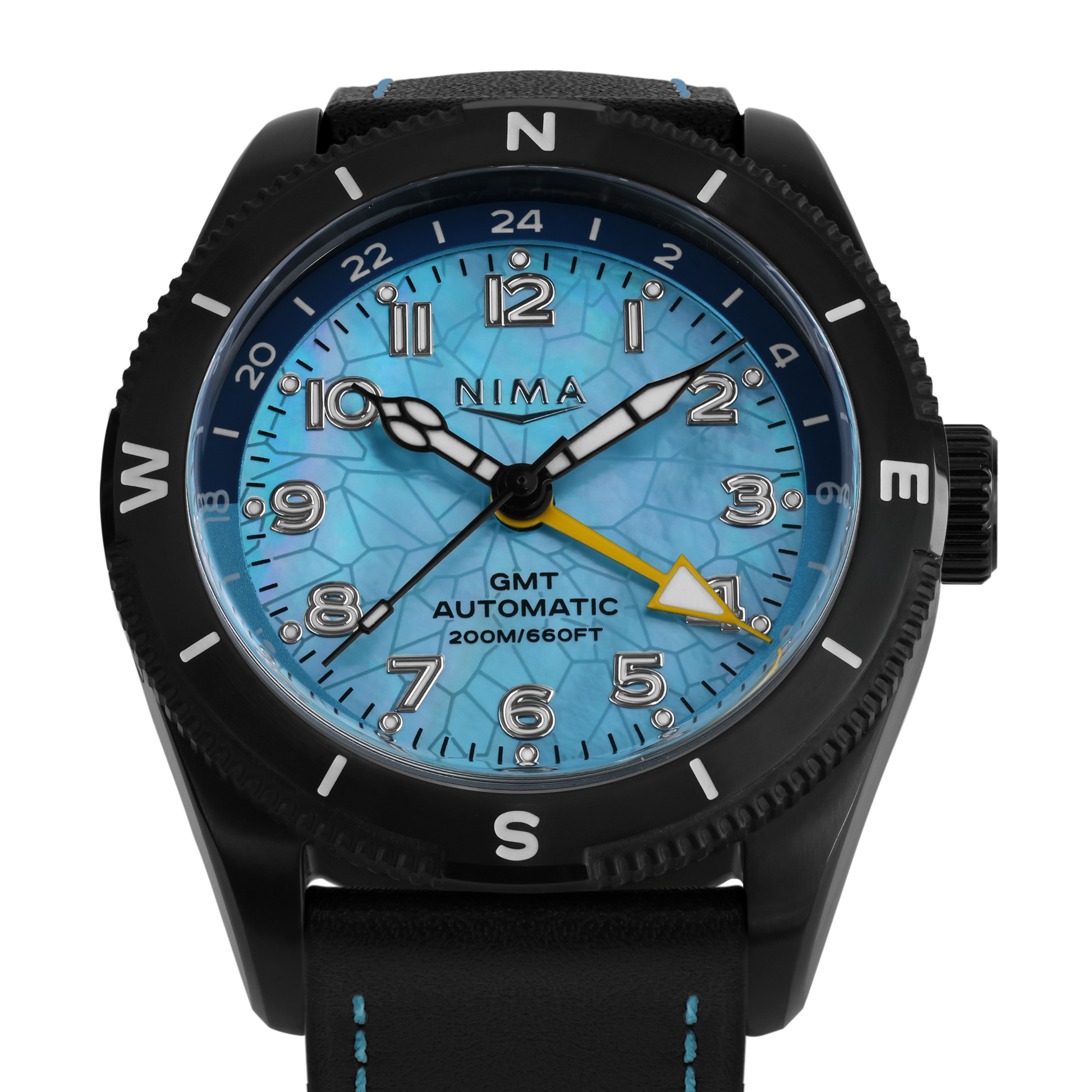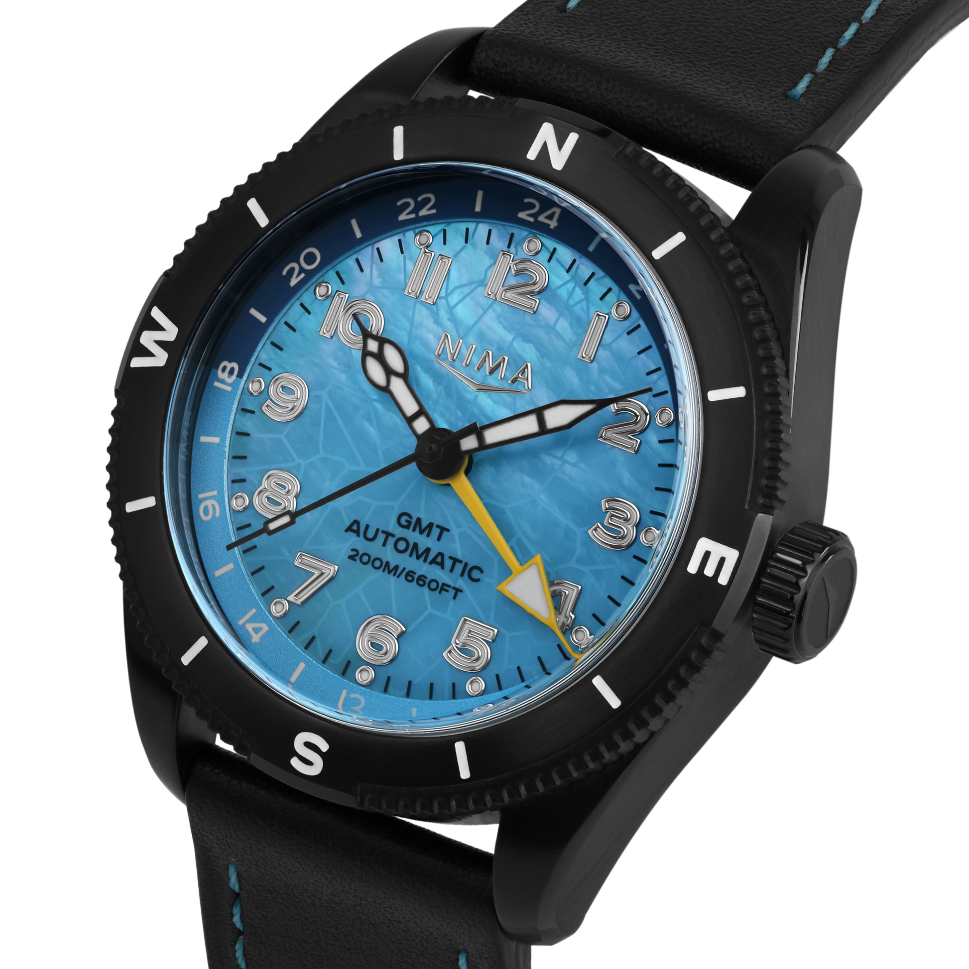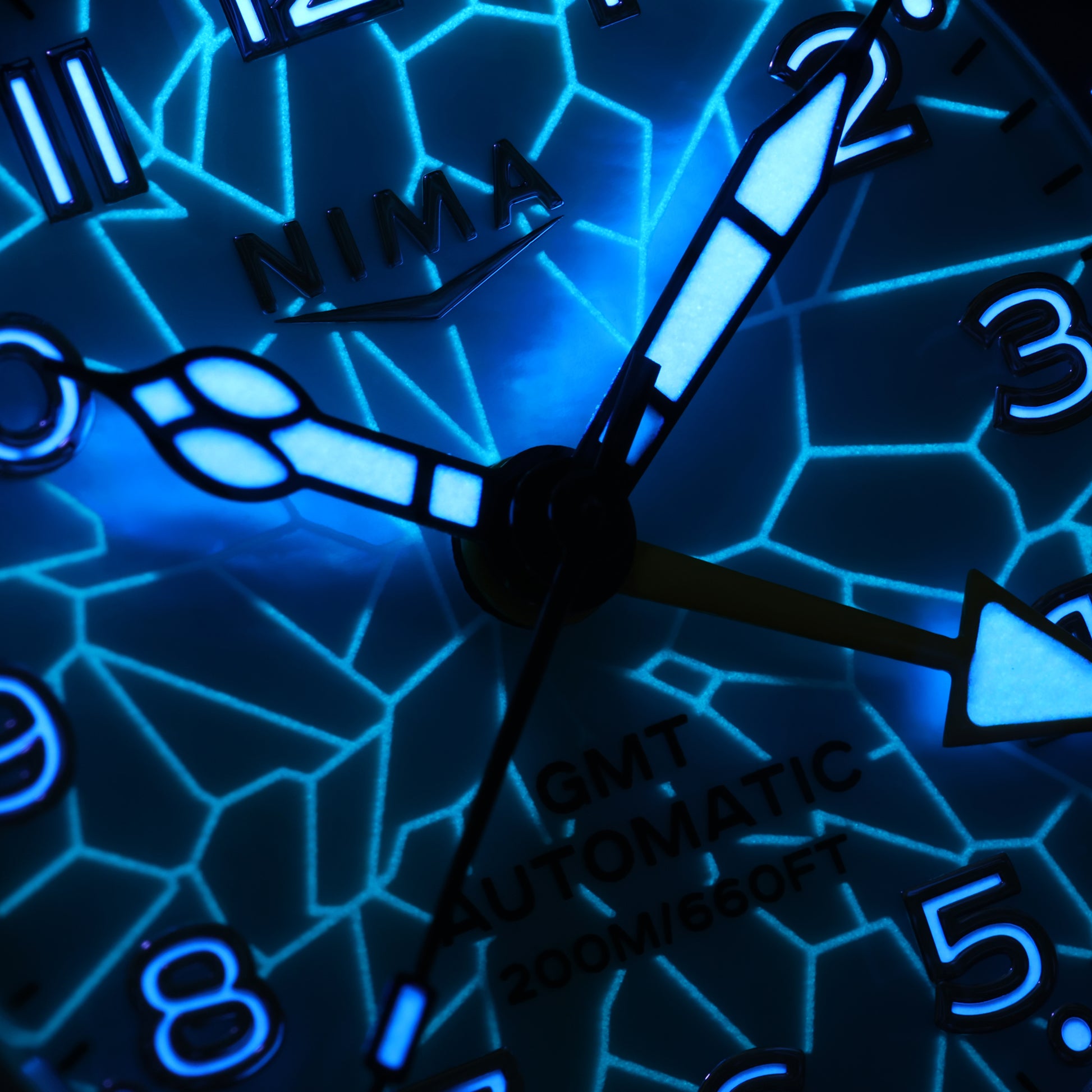 DIAL: Blue mother-of-pearl with Superluminova cracks